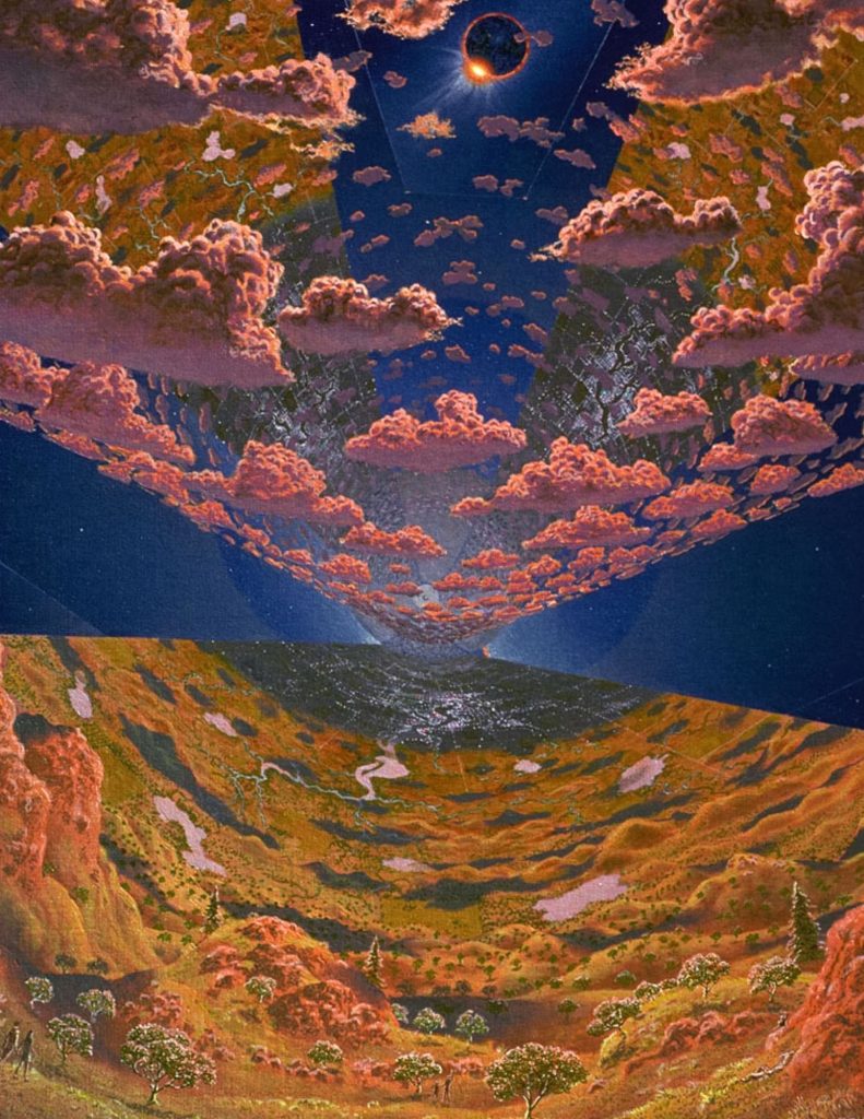 Internal view of the O’Neill cylinder (2015) painting by Don Davis. Original public domain image from Wikimedia Commons. Digitally enhanced by rawpixel.